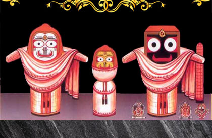Any Saturday or Wednesday between the new moon day of the month of Magha and Basanta Panchami is chosen for the Padma Besha. It is made during the ‘Bada Singhara’ ritual at night and the deities remain with the Besha throughout the night. The big petals of lotus adorn the faces of the deities in the shape of a disc. Lord Balabhadra and Lord Jagannatha hold lotus buds in their hands. Three triangular crowns made up of lace (crepe) and cloth are decorated with innumerable lotus flowers.